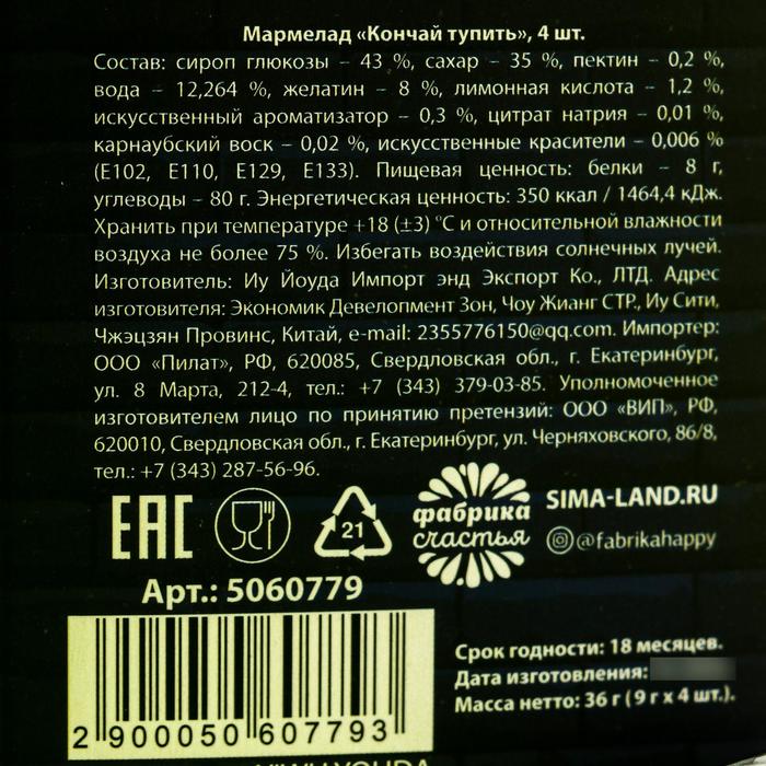 Мармелад «Кончай тупить», 9 г х 4 шт