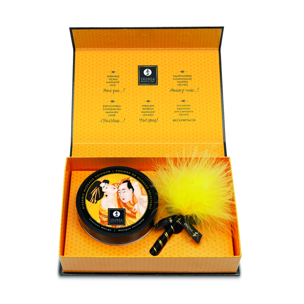 В комплекте — банка с 290 граммами массажной пудры Сочное Манго. Все готово к использованию: просто откройте и начните создавать моменты блаженства. Никаких дополнительных аксессуаров не требуется.