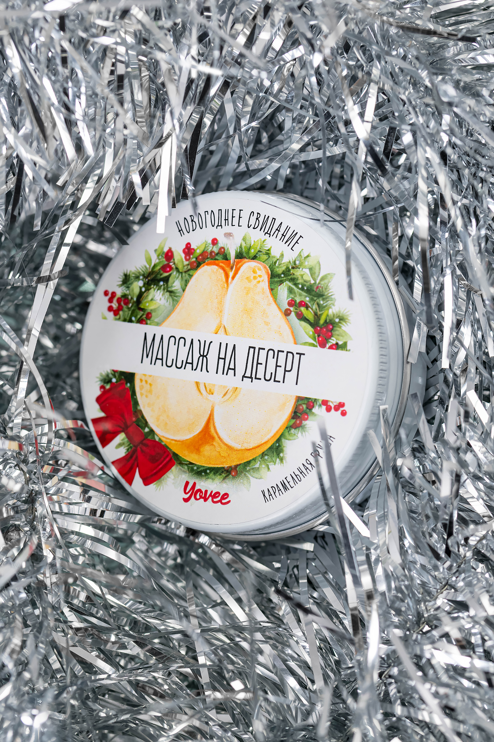 Массажная свеча новогодняя Yovee «Массаж на десерт», карамельная груша, 30 мл — твой сладкий билет в мир новогоднего удовольствия!
