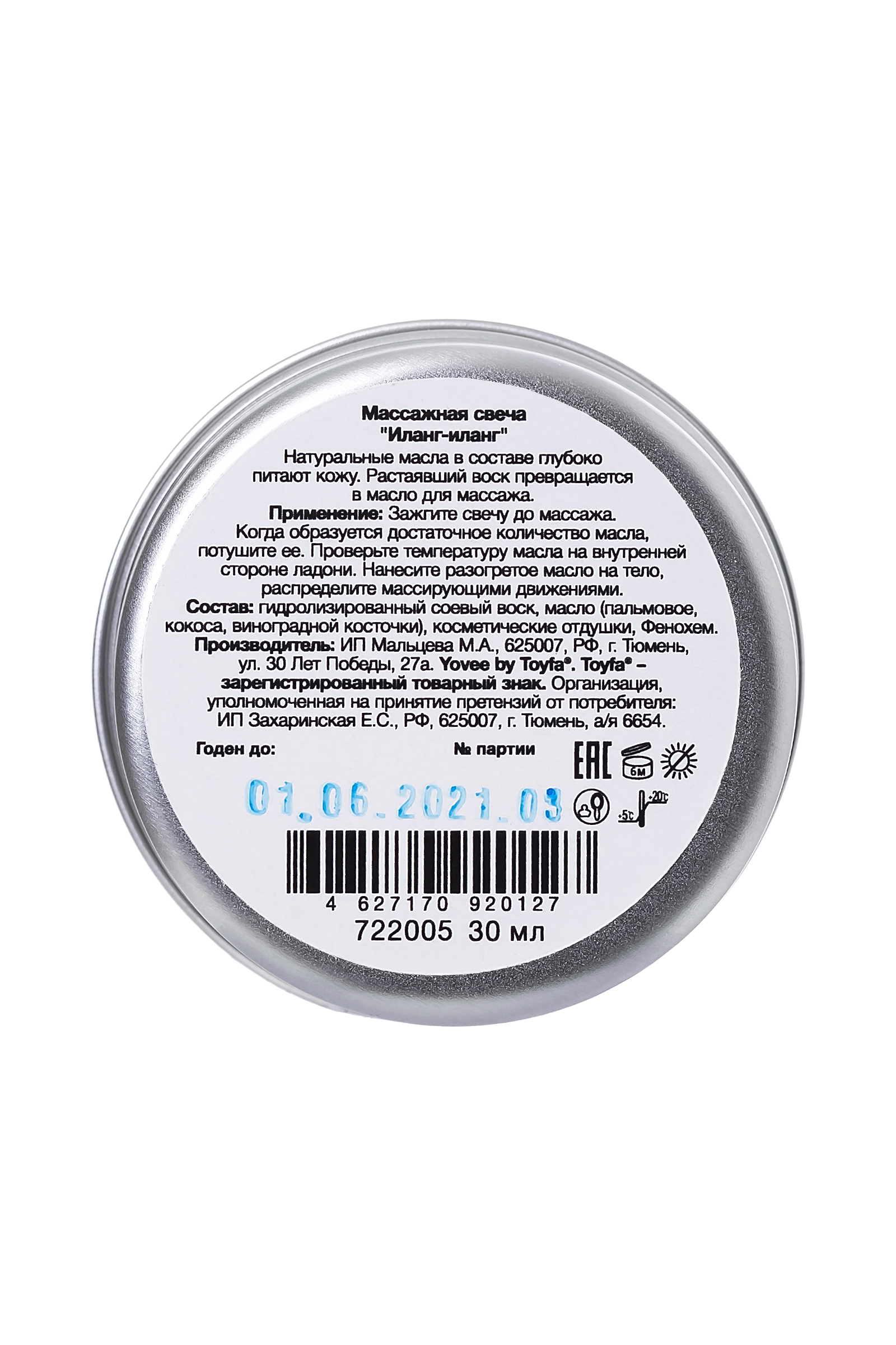 Массажная свеча Yovee «Возбуждающий массаж», с афродизиаком, иланг-иланг, 30 мл