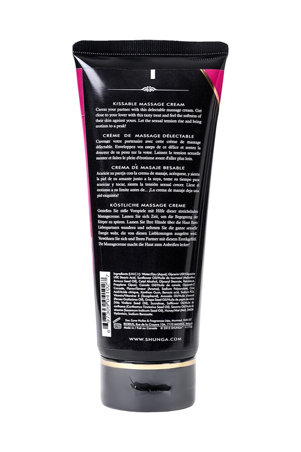 Крем наносится на кожу и быстро впитывается, создавая скользящую текстуру для расслабляющего массажа. Его съедобная формула позволяет перейти к поцелуям и ласкам, усиливая сенсорные ощущения и разжигая страсть без усилий.