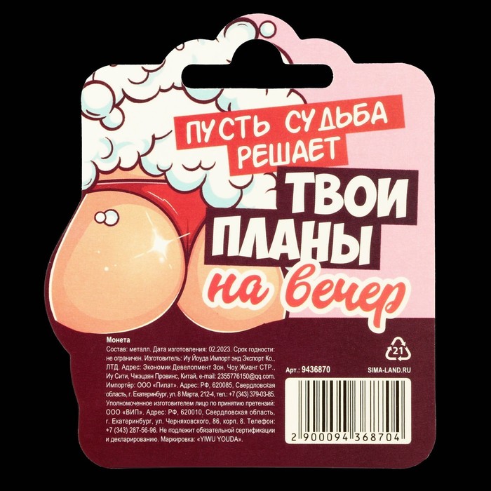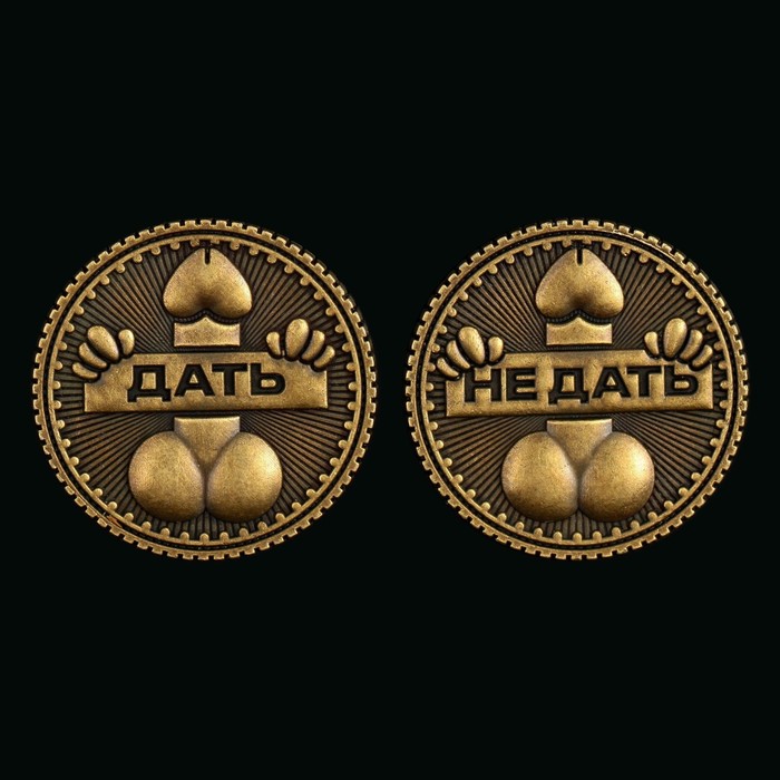 В комплекте одна металлическая монетка диаметром 2,5 см с гравировкой «Дать» и «Не дать». Готова к немедленному использованию для ваших страстных приключений!