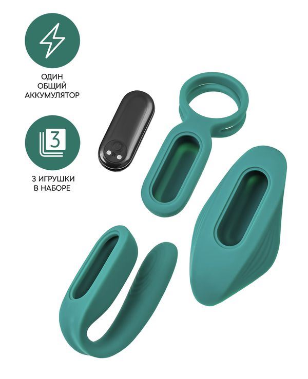 Уход за Набором вибраторов для пары Штучки-Дрючки "Trio for two", силикон, изумрудный