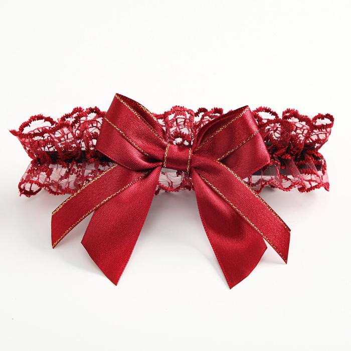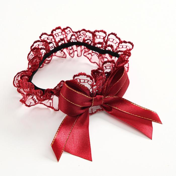 Подвязка кружевная "Кабаре", бордовая с бантом — твой билет в мир соблазнительных ощущений!