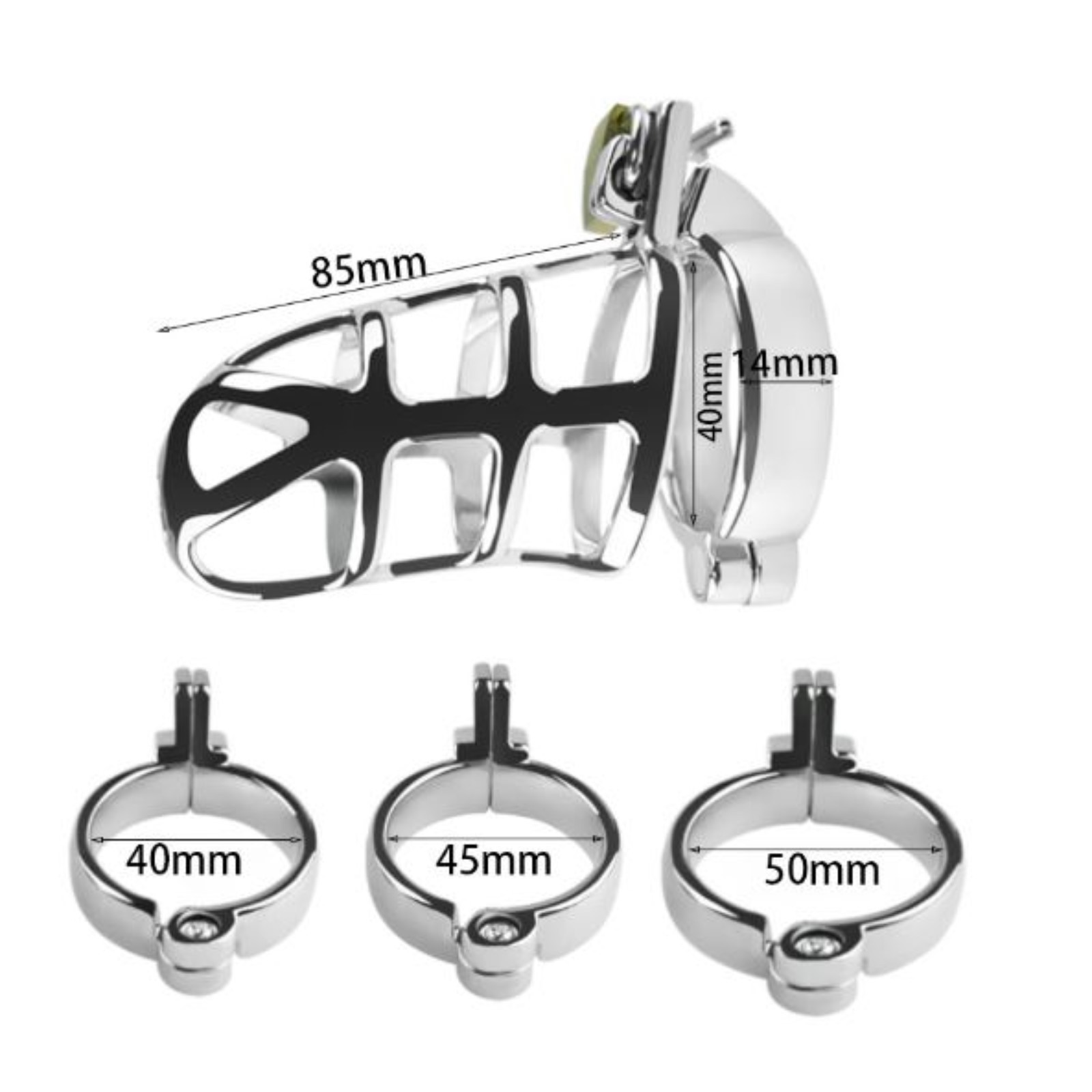 Пояс верности «Клетка целомудрия № 2», кольца d=4; 4.5; 5 см, замок, ключ, металл