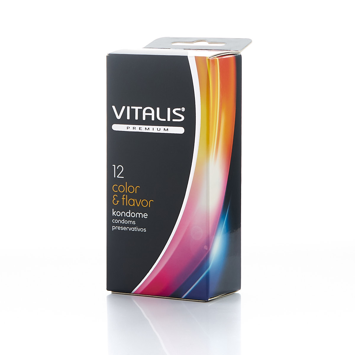 Презервативы Vitalis Premium color & flavor цветные, ароматизированные №12 — яркий взрыв вкусов и красок для страстных приключений!