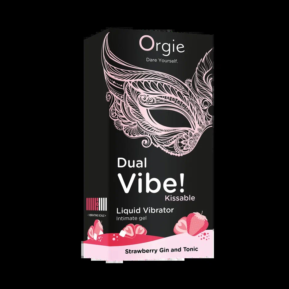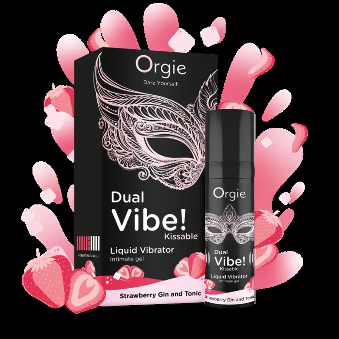Съедобный гель с вибрацией Orgie DUAL VIBE! со вкусом коктейля STRAWBERRY GIN AND TONIC — твой билет в мир незабываемых ощущений!