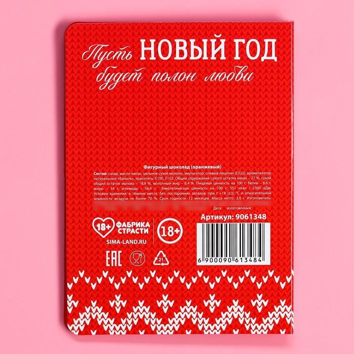 Погрузитесь в мир сладких ощущений прямо сейчас! Этот шоколад с открыткой — ваш секретный ингредиент для новогодних ночей, полных страсти и нежности. Разделите его с любимым человеком, почувствуйте, как вкус оранжевого шоколада усиливает каждое прикосновение, и позвольте эмоциям захлестнуть вас волной удовольствия. Не упустите шанс сделать праздник незабываемым — добавьте в корзину и ощутите магию любви!