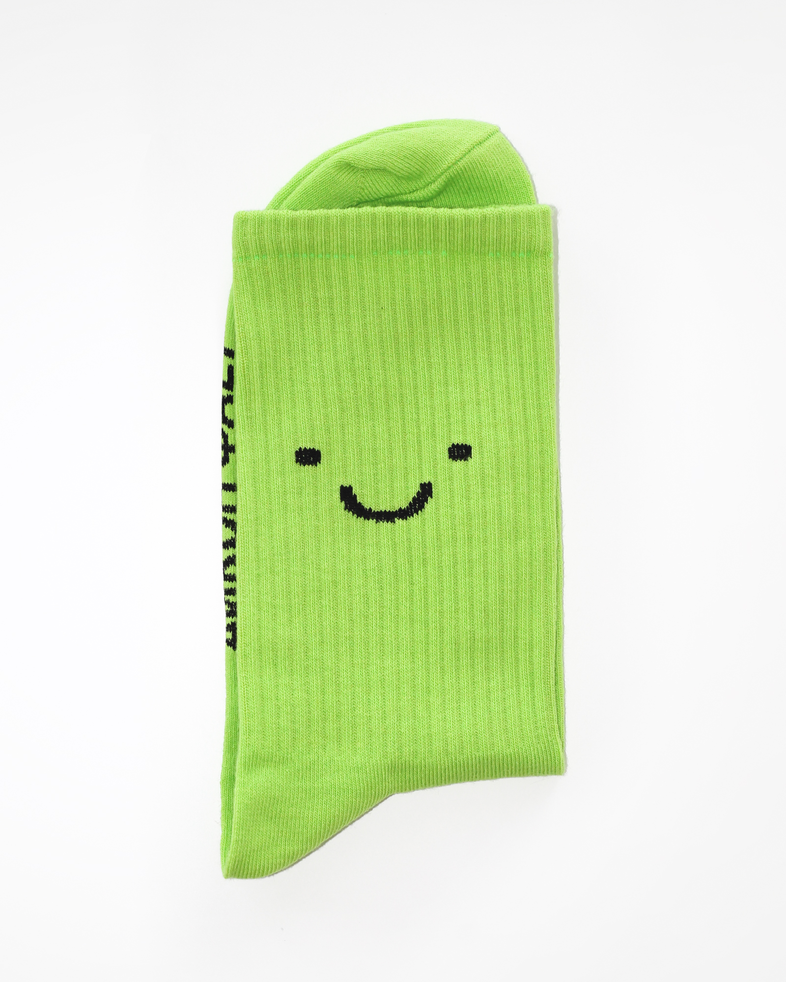 Они просто надеваются как обычные носки, но с особым шармом "Токсик" — мягкость ткани обеспечивает комфорт весь день, усиливая удовольствие от движения и добавляя эмоциональный подъем!