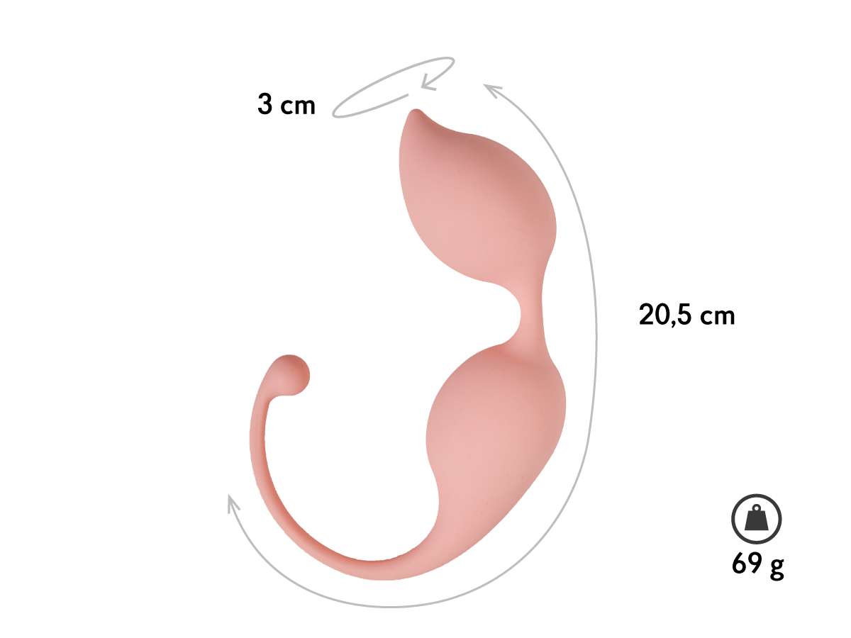 Эти шарики предназначены для тренировки мышц тазового дна: вставьте их и двигайтесь в повседневной жизни или во время интимных моментов, чтобы ощутить приятное давление и усиление удовольствия. Регулярное использование приведет к заметному улучшению тонуса и яркости ощущений.