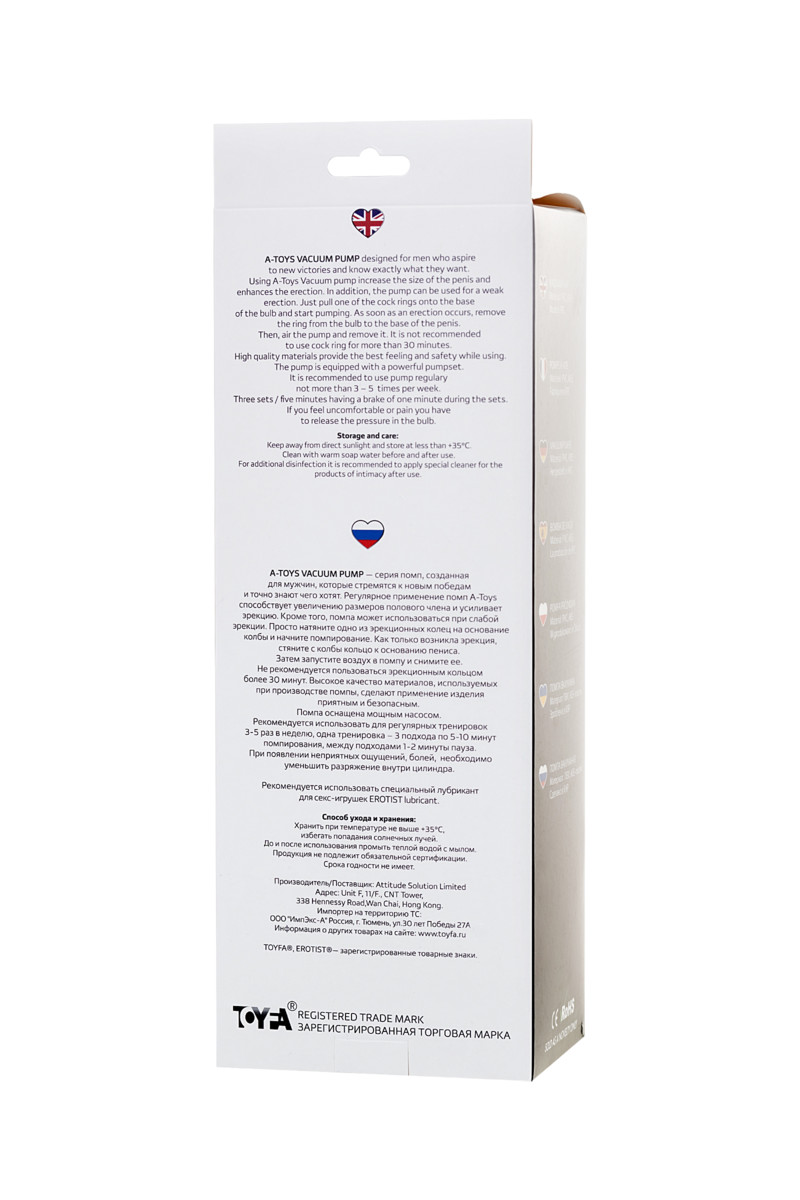 Уход за Вакуумной помпой для пениса A-Toys by TOYFA Crow
