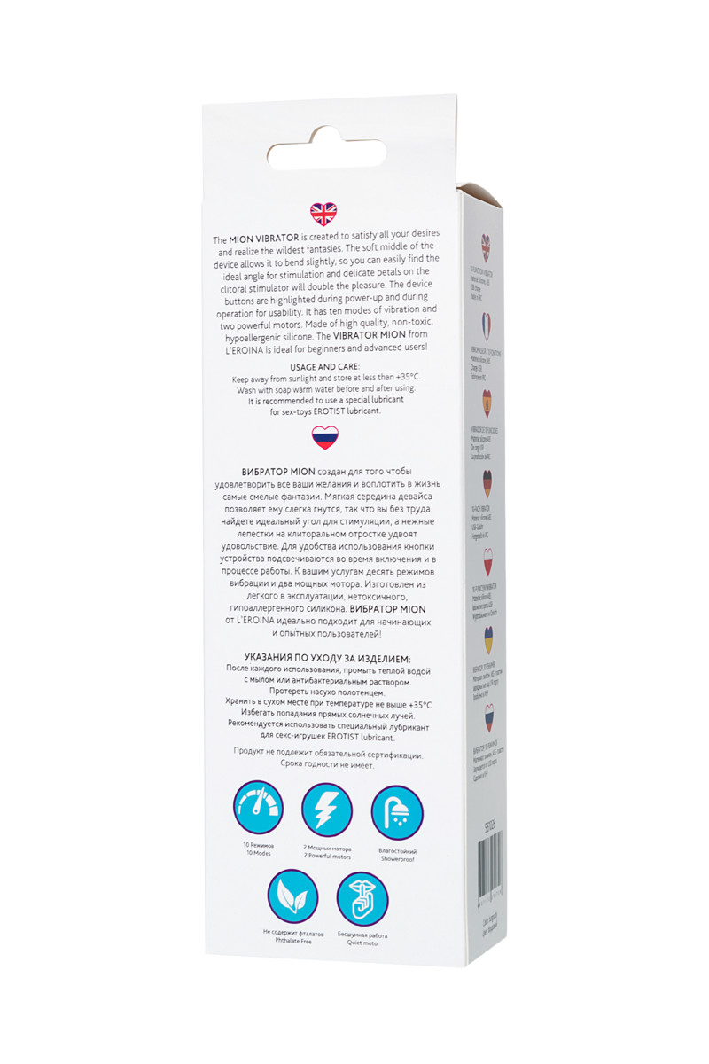Уход за Вибратором с клиторальным стимулятором L'EROINA by TOYFA Mion