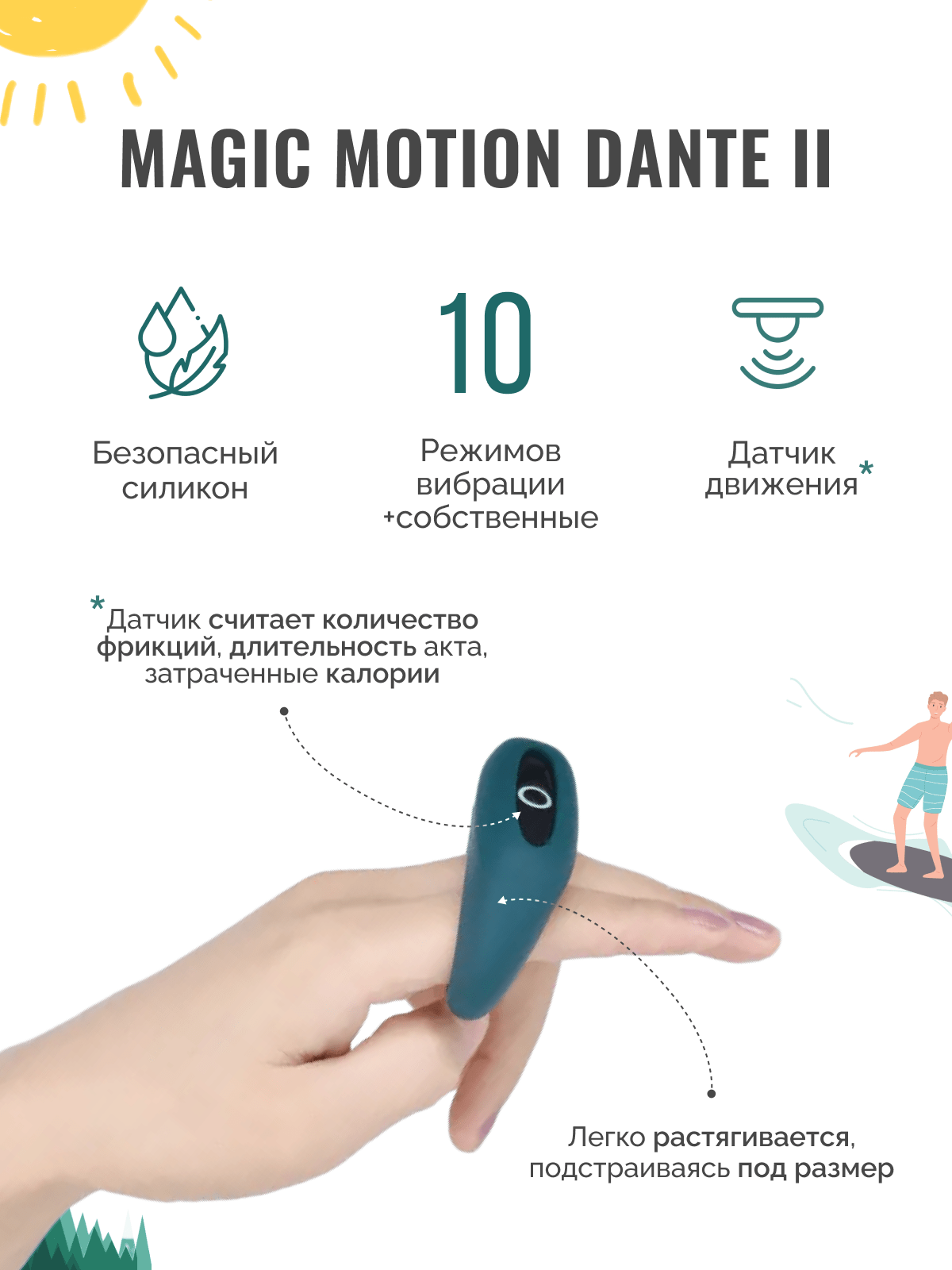 Представь, как бирюзовый блеск Magic Motion Dante II обхватывает вашу страсть, добавляя пульсирующие вибрации, которые разжигают огонь желания. Это кольцо — идеальный компаньон для пар, обещающий усилить удовольствие и сделать каждый момент незабываемым. С 12-месячной гарантией, оно готово дарить волны экстаза снова и снова!