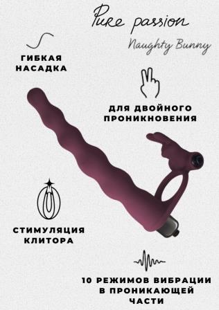 Вибронасадка для двойного проникновения Pure Passion Bunny — твой билет в мир взрывного удовольствия и страстных открытий!