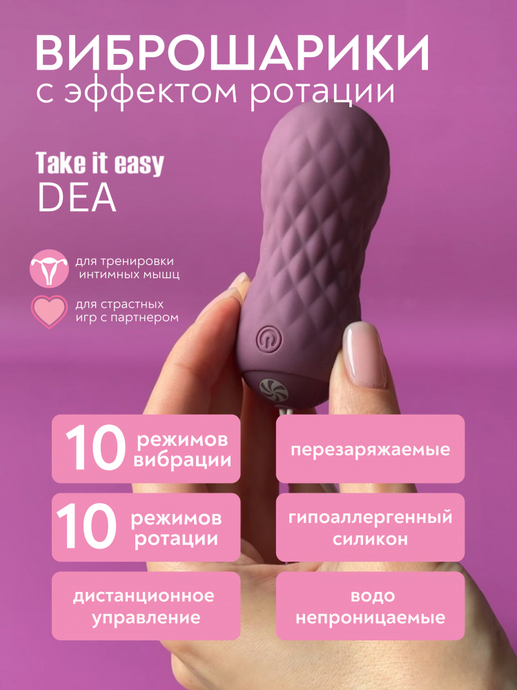 Вращающиеся виброшарики на пульте Take it Easy Dea, фиолетовый — твой билет в мир незабываемых ощущений!