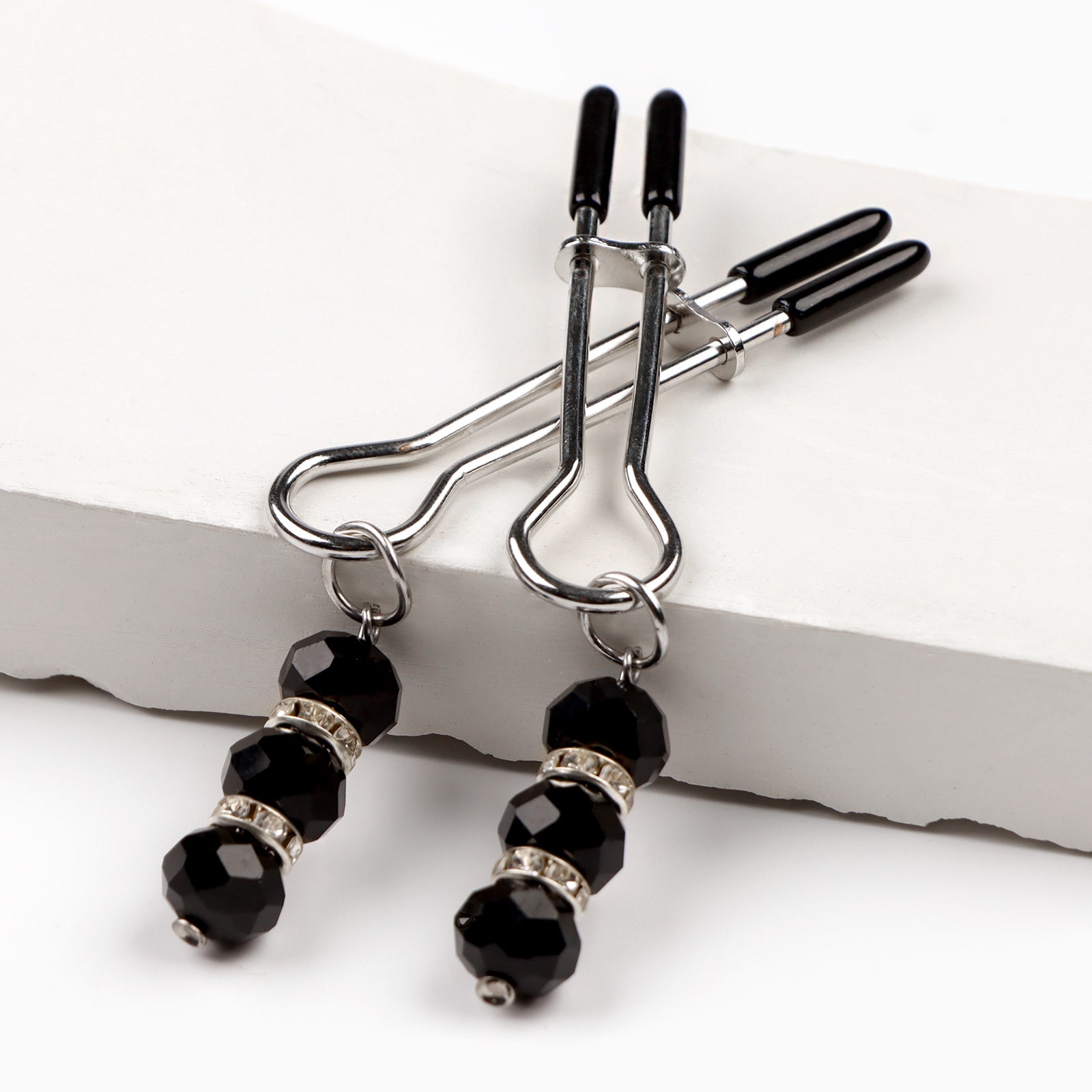 Зажимы для сосков БДСМ аксессуар, с бусинами, металл, пластик, черный