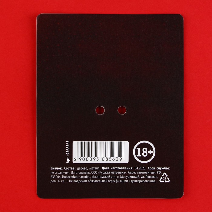 В комплекте только сам значок размером 3,5 х 2 см из качественного дерева — все, что нужно для мгновенного добавления страсти в вашу жизнь, без лишних элементов.